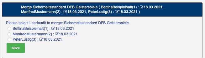 Sofern Ihr Checklistentyp merge unterstützt und sein Wert auf "Ja" gesetzt ist, können alle Checklisten, für die merge = "Ja" zutrifft, zusammengeführt werden: