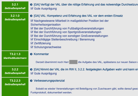 • Alle, mittels der "Task"-Funktion (Also im Grundzustand nicht vorhandene Fragen) eingefügten Elemente wie Kommentare, Nachweise etc. werden in die neue Checkliste eingefügt. Dadurch war es erforderlich, die Darstellung aller Fragen um den Autor zu erweitern, um später identifizieren zu können, wer welche Information beigetragen hat. Das bedeutet, alle eingefügten  Informationen werden auf jeden Fall übernommen. Nach dem Mergen muss also geprüft werden ob ggf. einzelne Kommentare wieder entfernt werden sollen: