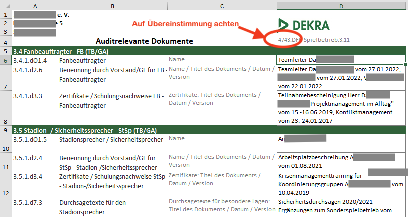 Auditrelevante Dokumente werden vermittels der Excel-Datei eingetragen oder geändert, die jeweils aus dem aktuellen Fragebogen heruntergeladen werden kann. Eine direkte Änderung in der Checkliste ist nicht (mehr) zulässig. Grund ist, dass beim Upload nun alle Audits im selben Ordner und nicht nur die bearbeitete Checkliste aktualisiert werden, um die Daten für alle beteiligten Auditoren synchron zu halten.