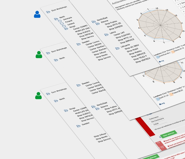 Diese Art der Clusterung aller auditBus Daten ist nicht nur eine komfortable Methode, die Benutzerrechte nach regionalen Zuständigkeiten zu organisieren. Sie ermöglicht außerdem sehr einfach Benchmarks z.B. nach Zuständigkeiten oder Regionen.