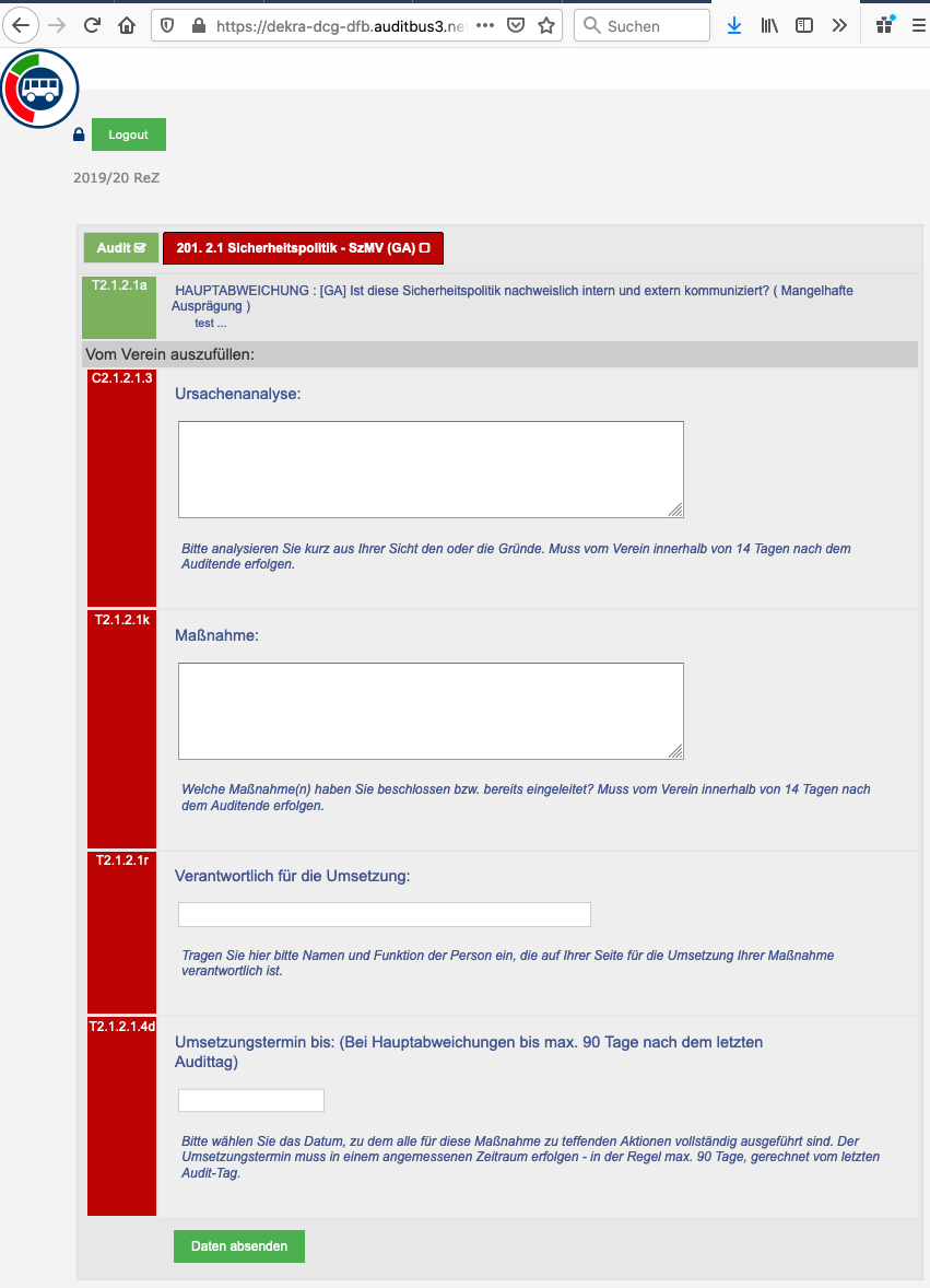 Der Maßnahmenplan ist so gestaltet, dass externe Benutzer lediglich die für Sie zur Bearbeitung freigegebenen Fragen sehen können. Für den Auditor vorgesehene Inhalte sind für den Gast-Benutzer unsichtbar.